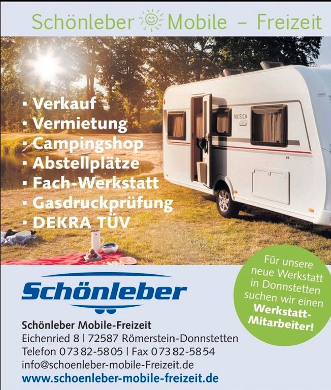 Gerne können Sie direkt einen Besichtigungstermin vereinbaren unter Tel. 07382 5805 oder per Mail info@schoenleber-mobile-freizeit. de oder schauen Sie spontan vorbei, jedoch mit Termin können wir mehr Zeit für Ihre Beratung einplanen.